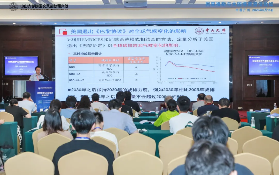 av直播 大气科学十大av直播平台 董文杰院长团队袁乃明教授做题为《冲突加剧的气候账单:大国博弈侵蚀全球气候安全边界》的报告,深入分析了冲突加剧对气候变化带来的影响,呼吁加强国际合作应对全球气候变化。