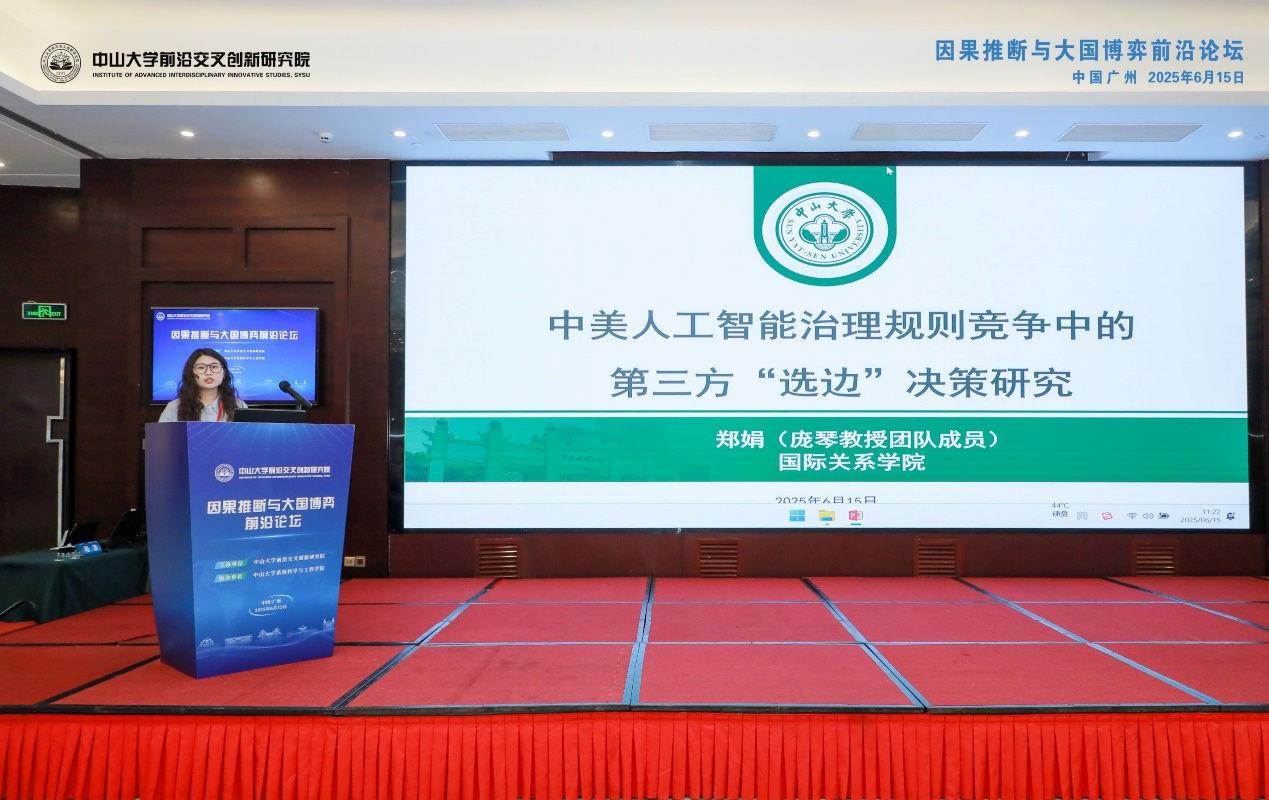 av直播 国际关系十大av直播平台 庞琴教授团队郑娟博士分享《中美人工智能治理规则竞争中的第三方“选边”决策研究》,探讨了第三方国家在中美竞争中的策略选择及其动因,提出了一套定性定量结合的分析方法。