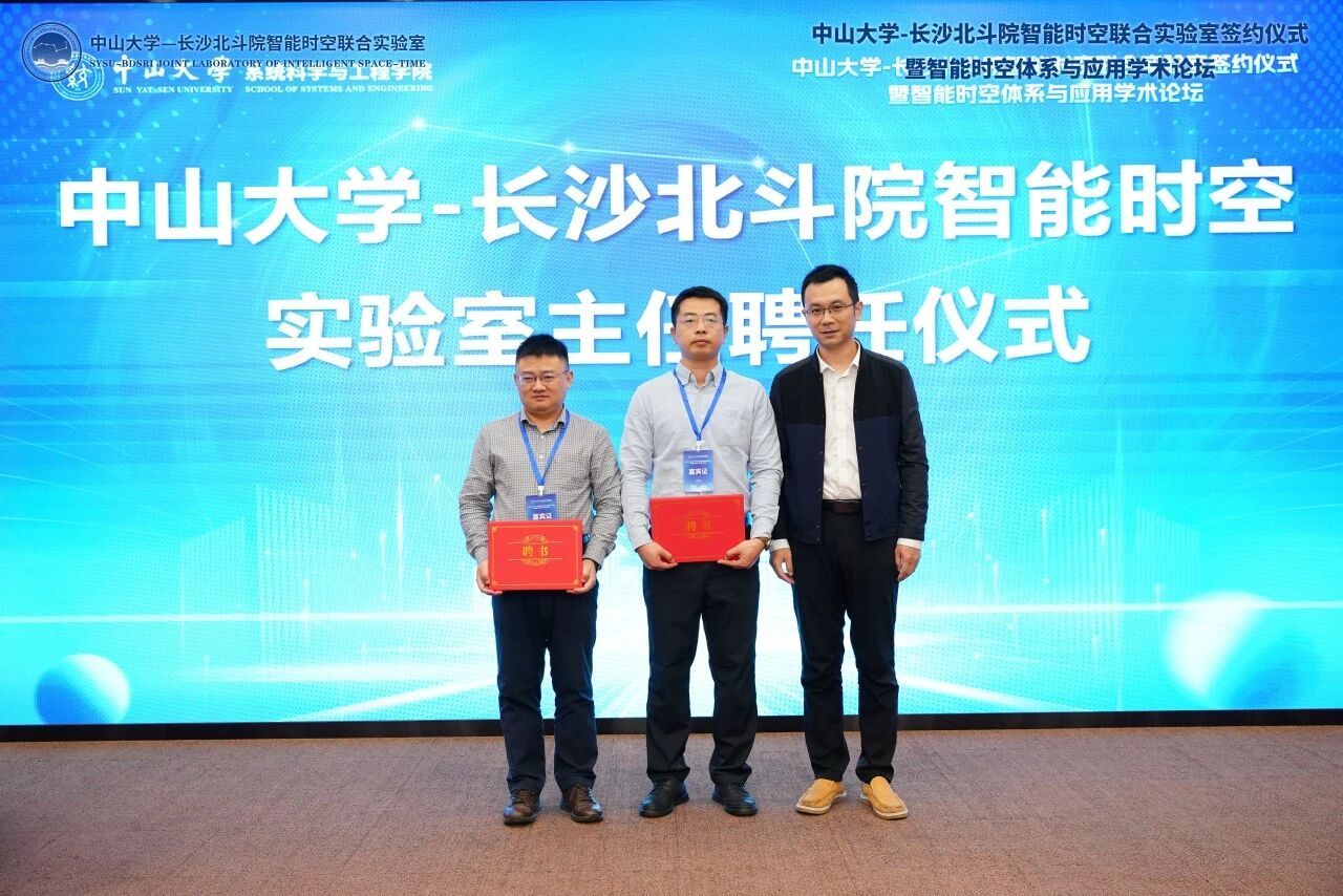 随后,长沙北斗产业安全技术研究院与av直播-十大av直播平台 签署合作协议。李一希副院长为长沙北斗产业安全技术研究院总经理助理赵斌和av直播-十大av直播平台 伍蔡伦教授颁发联合实验室主任聘书。同时,与会嘉宾共同为新获得广东省教育厅支持的“智慧时空体系设计与应用广东普通高校重点实验室”举行了揭牌仪式。该实验室是面向国家综合时空领域重大战略需求,重点开展智慧时空体系导航新理论与创新体制、天基通导融合新机理、时空体系仿真与数字孪生等研究,为我省在综合时空产业规模化应用的核心竞争力跃升提供有力支撑。